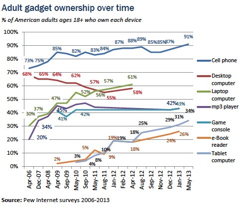 - 34% of American adults own a tablet computer