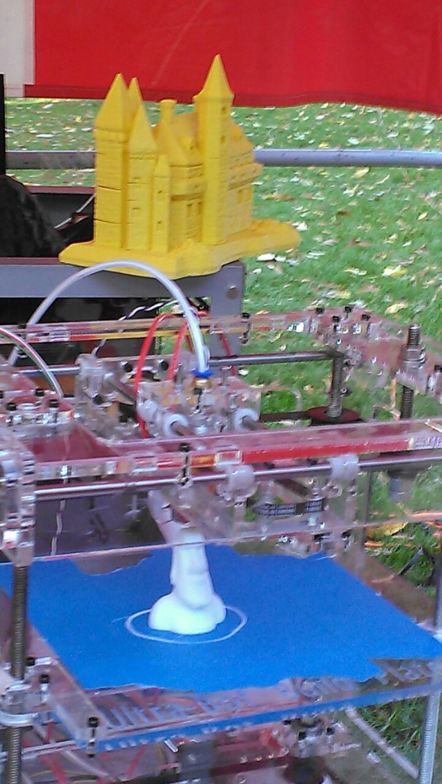 From Cincinnati Mini Maker Faire a couple weeks ago. A desktop 3d printer, on the market for $300 soon. Quote from @JamesRucker: “I want one!”